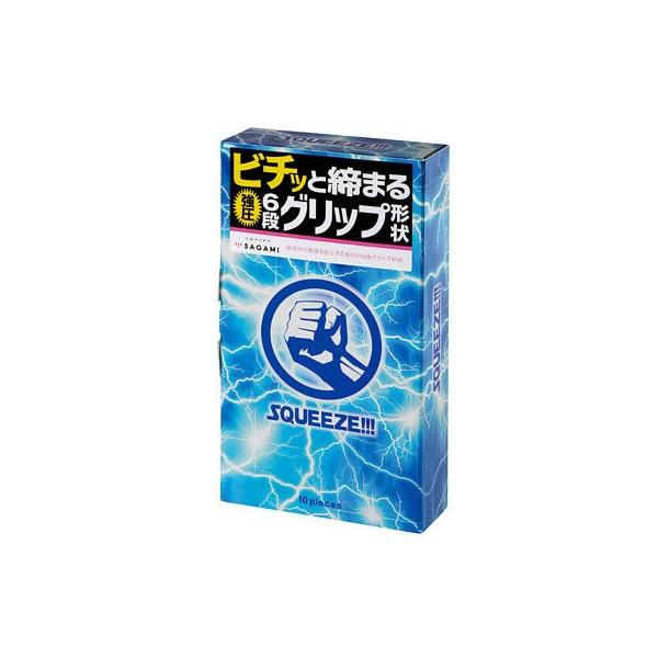 ビチッと締まる強圧!まるでギュッと握られているような締め付け感のサガミブランドコンドーム「SQUEEZE(スクイーズ)」10個入。サガミ社独自の波打つような6段グリップ形状タイプ!絞り部分の直径が27mmと一般的な製品よりも細めなのでしっかり密着&刺激!使用中の脱落も防止しながら、タイトなフィット感と強い締め付け感を楽しめます。なめらかな使用感が得られる潤滑剤付き、ピンクカラーのラテックス製コンドームです。