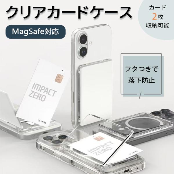 MagSafe クリアカードケース スマホ全機種対応 カード2枚収納 フタ付き 落下防止 薄型7mm 強力マグネット吸着 透明クリア ステッカー収納 iPhone Android