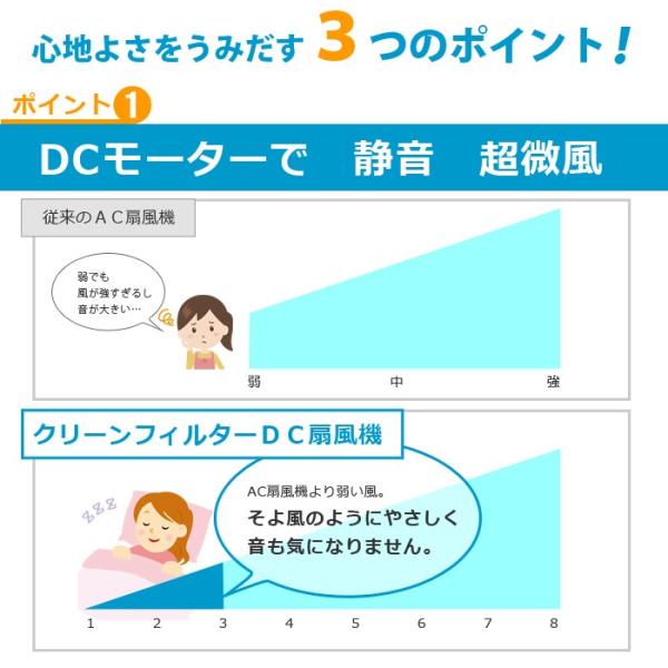 ■DCモーターで、静音・超微風