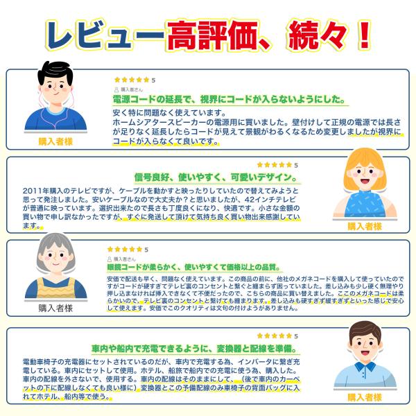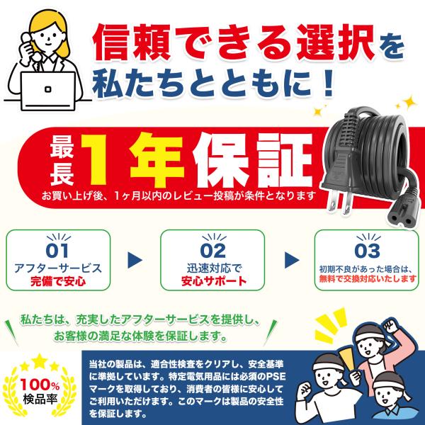 ■耐寒性、耐熱性:高品質で耐候性が高いコードでとても丈夫です。耐寒性と耐熱性に優れたやわらかい電線を採用して長寿命です。日本PSE(電気用品安全法)認定済 メーカー正規品 ※PSE認定していない製品は発火の恐れがあります。