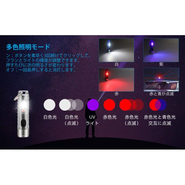 懐中電灯 ハンディライト ミニサイズ 超小型 キーホルダー懐中電灯 led 強力 USB充電式 防水 白赤UV青4つ色 フラッシュライト COSMONE ポイント利用