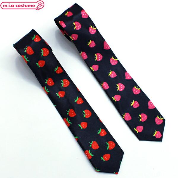 1281G■【送料無料・即納】B品 ネクタイ 細身プチイチゴ柄 色:黒×赤/黒×ピンク 苺 ストロベリー スクール カジュアル オシャレ ハロウィン コスプレ