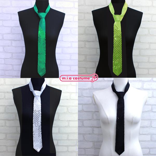 1280BCD■【送料無料・即納】B品 カラフルスパンコールネクタイ 色:ブラック/グリーン/パープル/シルバー/ライトイエロー/濃ピンク/ピンク/ブルー/aグリーン