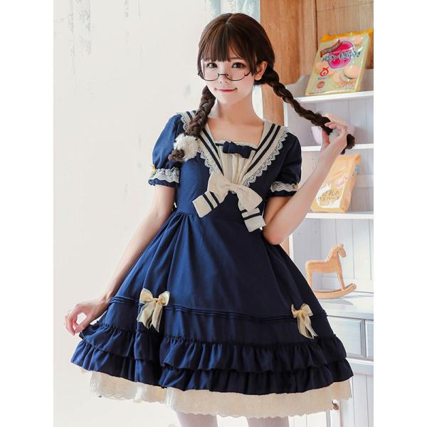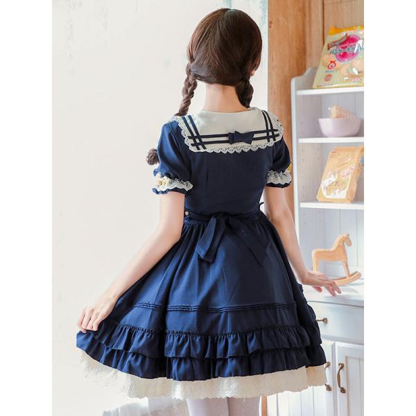 スウィートロリータOPドレスライン帆の帆フリルブルーロリータ