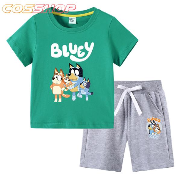 多色・多柄春夏新作 子供服 半袖Tシャツ ブルーイ 100%綿 ラウンドネック 丸首 男の子 女の子 子ども服 小学生から幼稚園児に適 パンツ 短袖 トップス