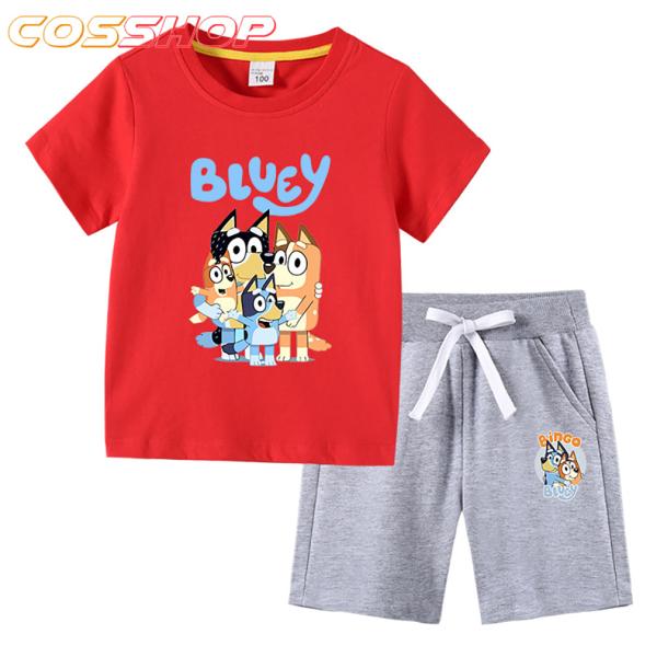 多色・多柄春夏新作 子供服 半袖Tシャツ ブルーイ 100%綿 ラウンドネック 丸首 男の子 女の子 子ども服 小学生から幼稚園児に適 パンツ 短袖 トップス