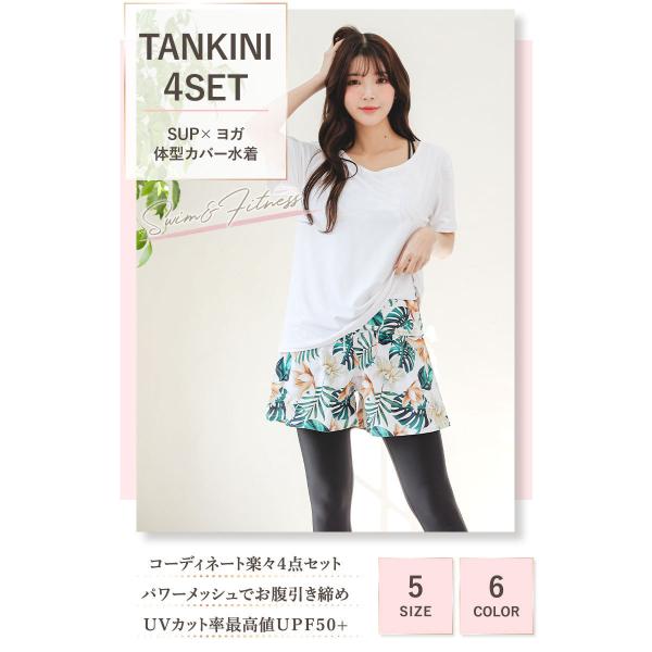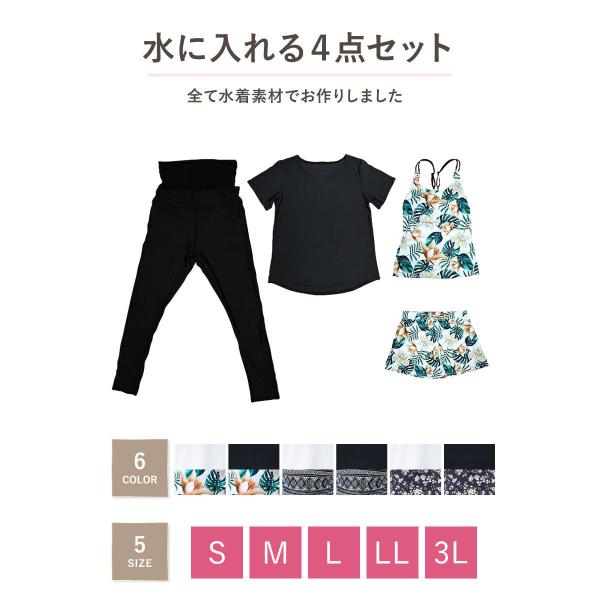 水着 レディース 体型カバー ヨガ水着 タンキニ オーバーTシャツ ショートパンツ レギンス 4点セット