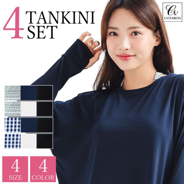 水着 レディース 体型カバー タンキニ ロングTシャツ ロングパンツ 4点セット 大きいサイズ 体型カバー水着