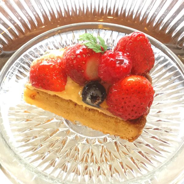 アーモンドクリーム入りのタルト生地は、フレッシュバターを100%使用しサックリ焼き上げています。卵黄をたっぷり使ったカスタードクリームはコクがあり、ふんだんに乗せられた瑞々しいフルーツと一緒に食べることで、より濃厚な味が引き立ちます。