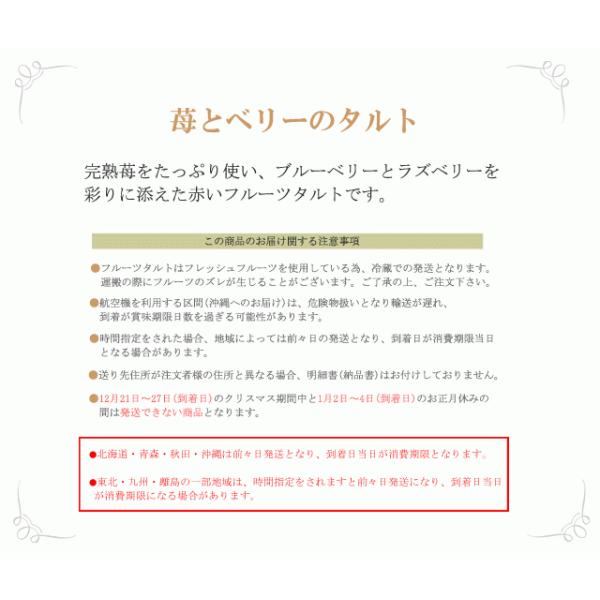 ※フレッシュフルーツをたっぷり使用している為、冷凍での発送が出来ません。固定してお送りいたしますが、車での発送時、振動により多少フルーツがズレる恐れのある商品になります。ご了承の上ご注文下さい。