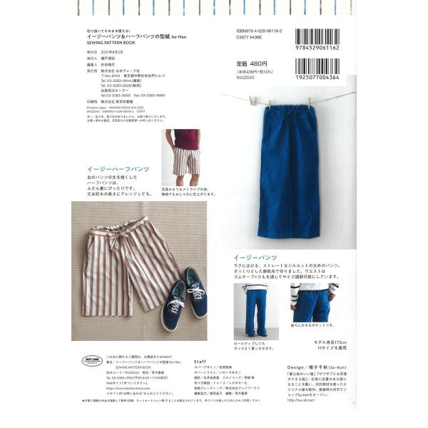 切り抜いてそのまま使える! イージーパンツ&ハーフパンツの型紙 for Men SEWING PATTERN BOOK 日本ヴォーグ社 (単位 1冊)