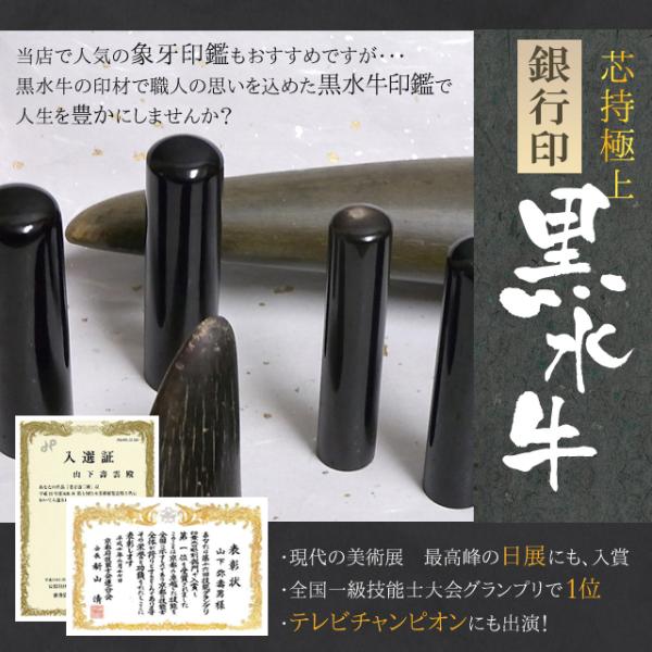 印鑑 銀行印 個人印鑑 黒水牛(芯持極上) 13.5mm ケース付 銀行用 男性 女性 手彫り 開運 銀行印 手仕上