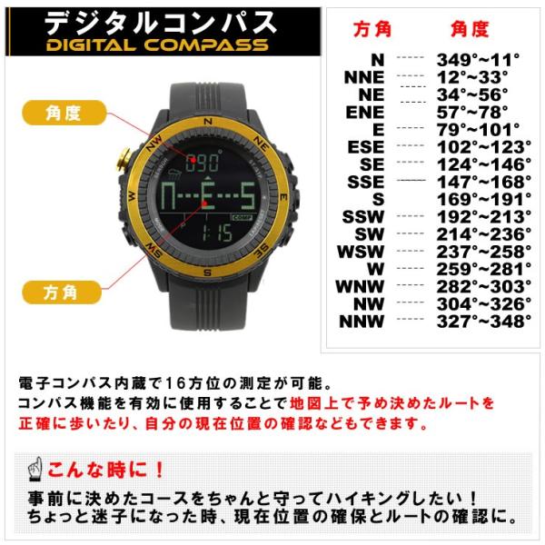 腕時計 メンズ デジタル 時計 温度計 コンパス 気圧計 高度計 アウトドア キャンプ 登山用