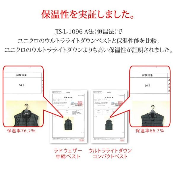 一般的なポリエステル綿と比べて、1.5〜2倍の保温力を持つ。