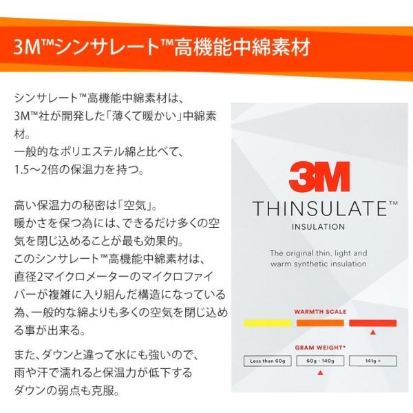 シンサレート(TM)高機能中綿素材は、3M(TM)社が開発した「薄くて暖かい」中綿素材。