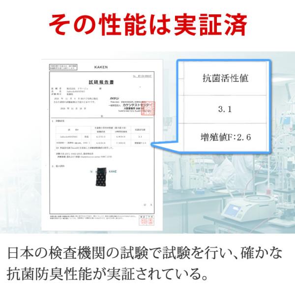 性能は日本の検査機関で実証済みなので安心。