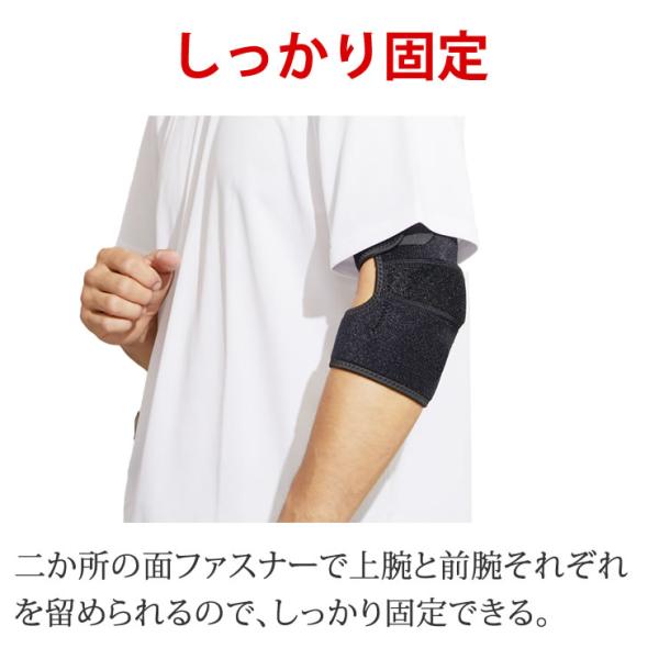 簡単に装着できて強力に固定 肘 サポーター
