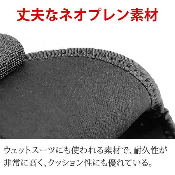 本体の素材はウェットスーツにも使われるネオプレン素材を採用しており、耐久性が高くクッション性にも優れている。