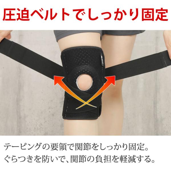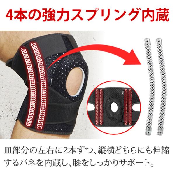 4本の強力スプリング 圧迫ベルトで調整自在 膝サポーター 膝