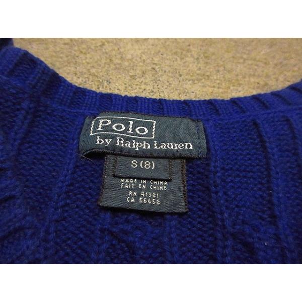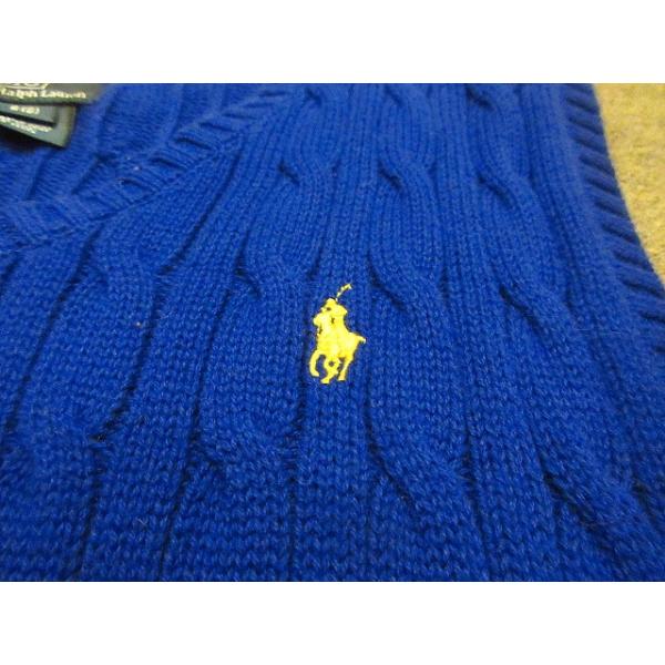Polo by Ralph Laurenキッズケーブル編みニットベスト青sizeS(8)★200522s9-k-vs古着ラルフローレン子供服USA