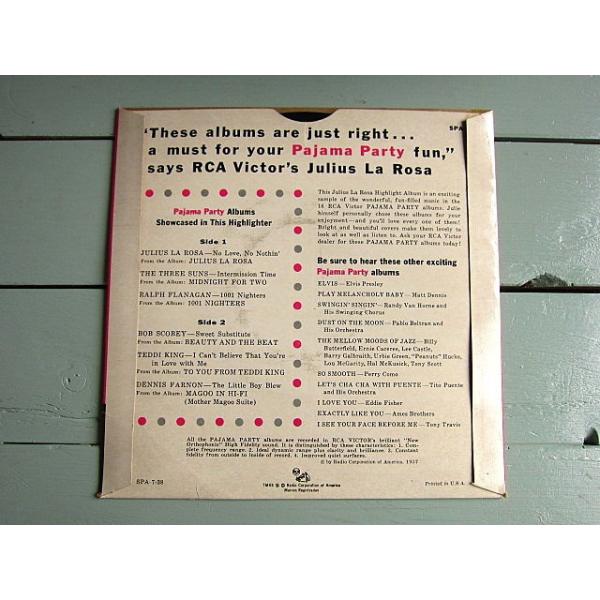 Julius La Rosa★Pajama Party Highlight Album RCA VICTOR SPA-7-38★200522t2-rcd-7-vcレコード7インチ55年EPヴォーカル50's米盤