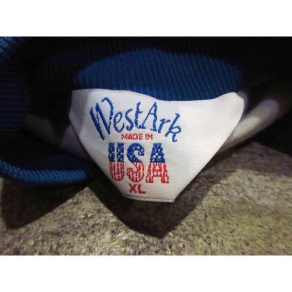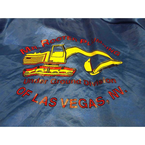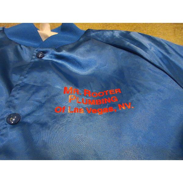 ビンテージ80’s90’s●WestArk MR.ROOTER PLUMBINGナイロンボタンスタジアムジャケット青size XL●210321s5-m-jk-stdスタジャン古着