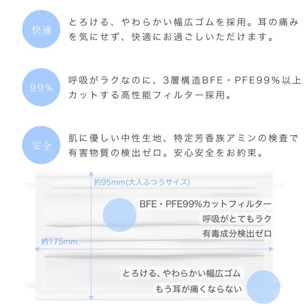本体:ポリプロピレン不織布、 耳ゴム:ポリウレタン・ポリエステル、 ノーズワイヤー:PVC