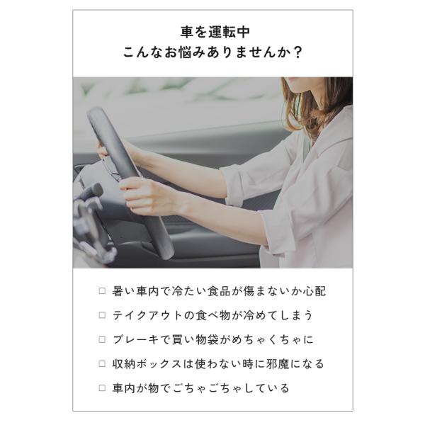 ・本製品はシートに完全に固定される構造ではありません。走行中の揺れや急なブレーキ、段差のある道などでは中身が飛び出す恐れがあります。