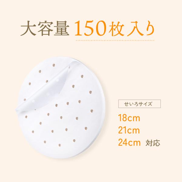 せいろ用調理シート 150枚入り せいろ せいろ紙 蒸し紙 蒸し器 蒸籠 蒸篭 セイロ クッキングシート 丸型 穴あき せいろ用 せいろシート 18cm 21cm 23cm 24cm