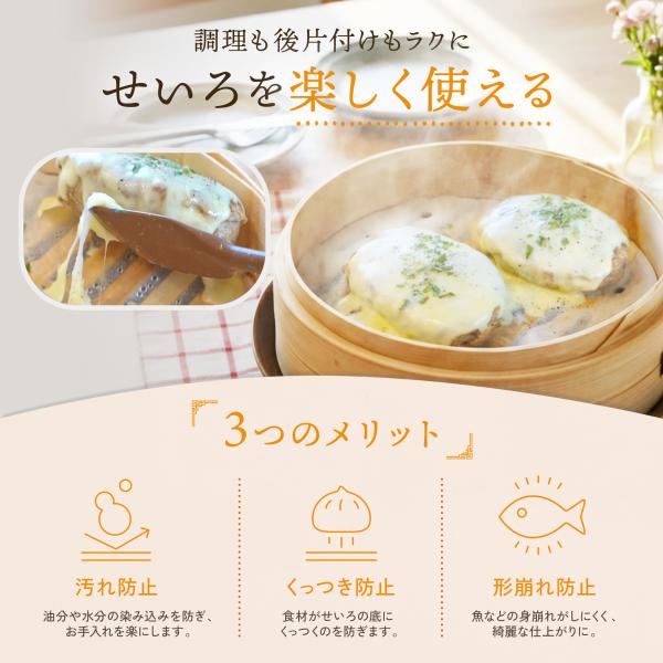 高温の水蒸気でも形を保つ耐熱仕様のため、せいろや蒸し器、蒸籠調理にも安心してご使用いただけます。