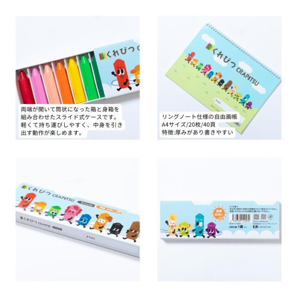 くれぴつ スリーブ箱8色+自由画帳 セット 日本製 安全 クレヨン 画材 色鉛筆 はじめてお絵描き 折れない 汚れない 1歳 2歳 赤ちゃん プレゼント ギフト