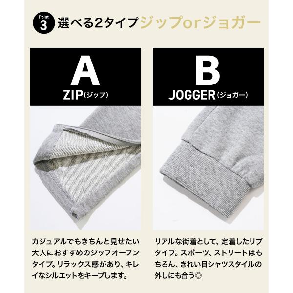 テーパードシルエットで美脚効果を演出!裾部分はリブとジップタイプから選べます◎