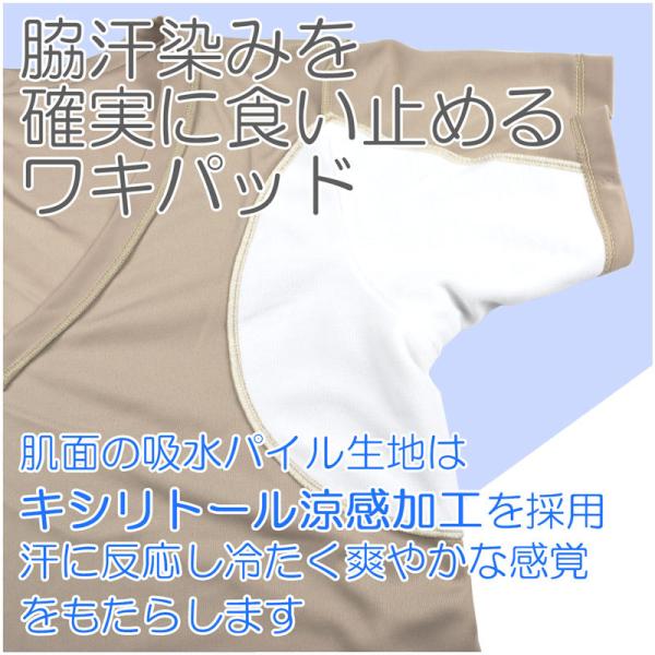 脇汗パッドには涼感・抗菌・防臭加工の吸水パイル+防水布を内蔵。