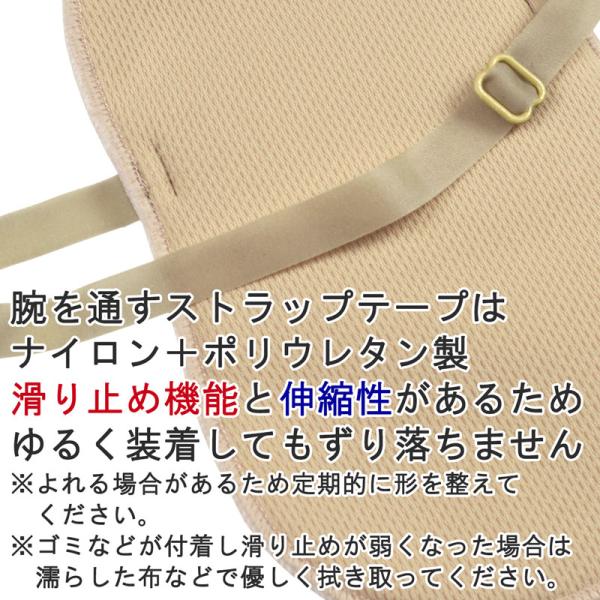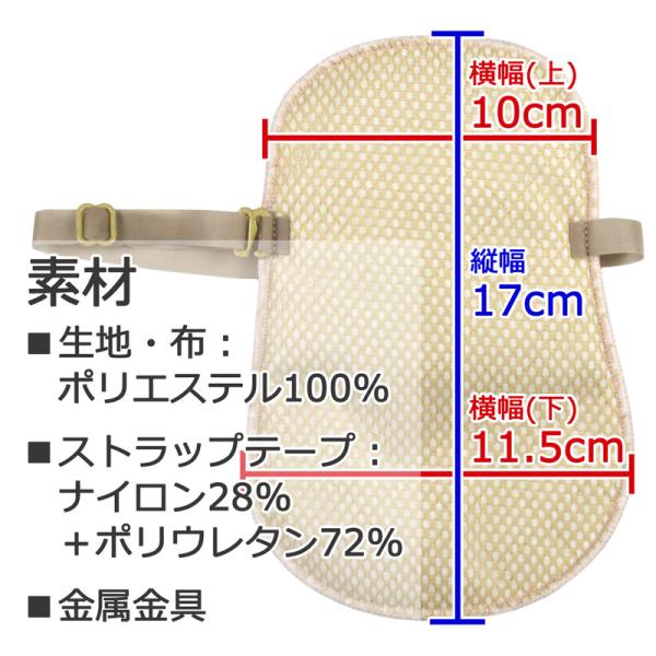 装着用のストラップは取り外しができるので、服を着たままでも衿口からパッドを抜き取ることができます。