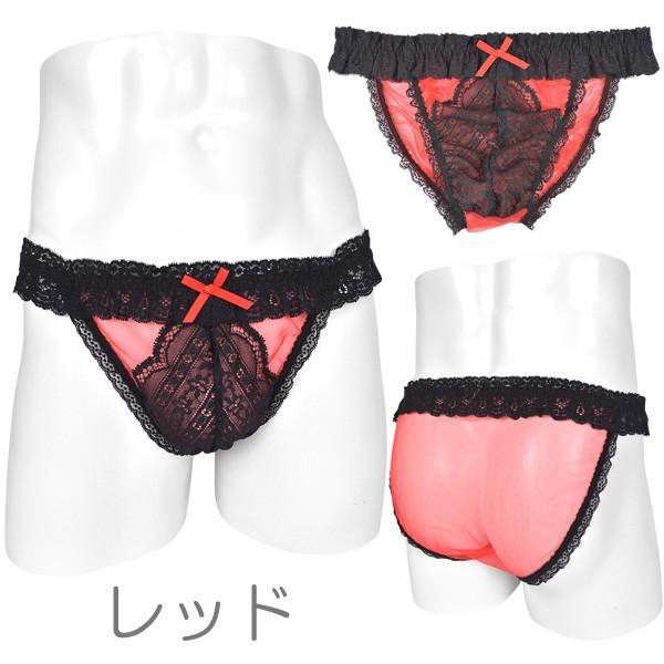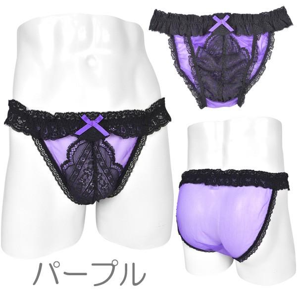 シースルーのスパークハーフ生地と黒レースのメンズビキニショーツです。