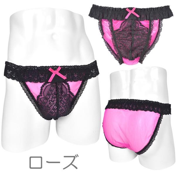 メンズ ビキニ ショーツ ブライトスムース 黒レース 男性下着