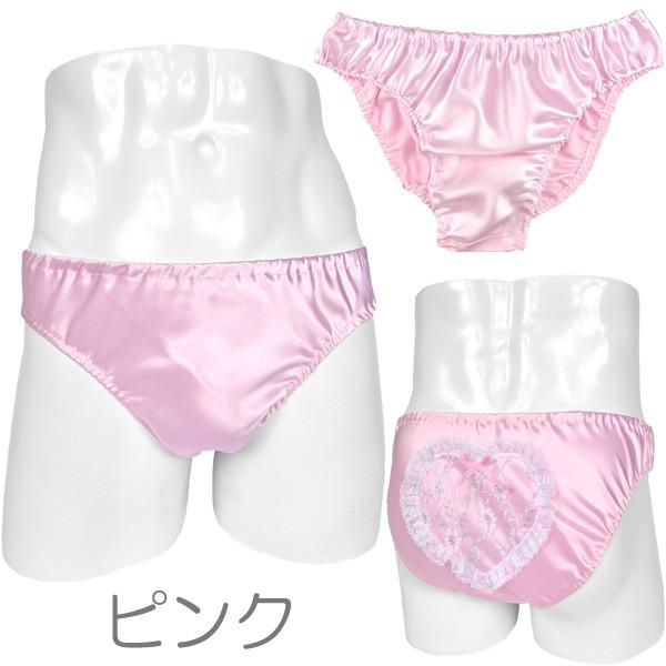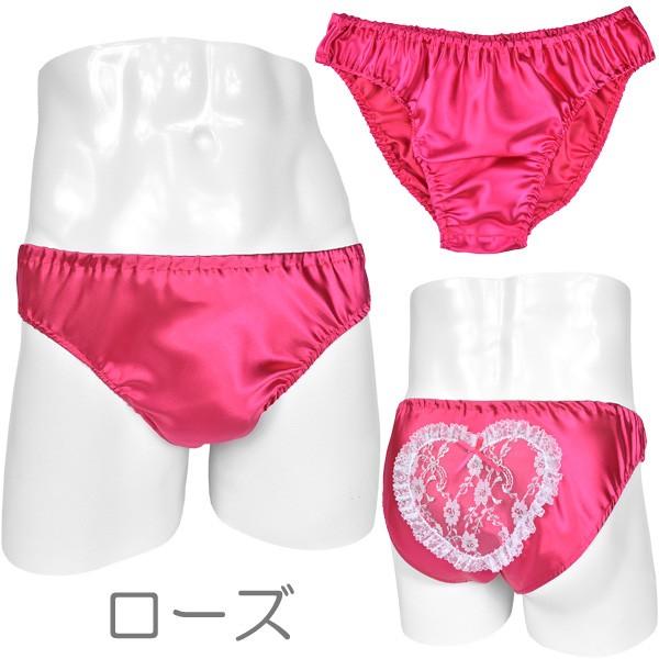メンズ ショーツ サテン バックハート 男性下着 女装 フェミニン