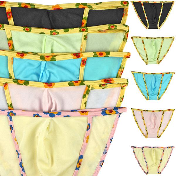 メンズ ビキニ ショーツ 小花プリントコットン フチ取りメロウフリル 男性下着