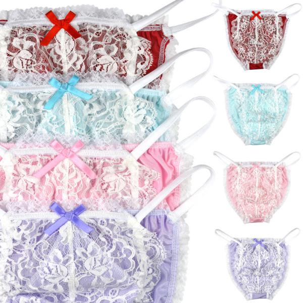 メンズ ビキニ ショーツ 小花プリントコットン フチ取りメロウフリル 男性下着