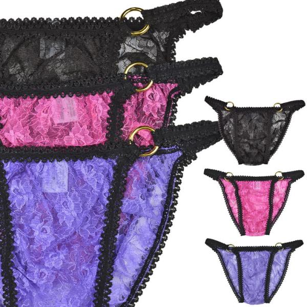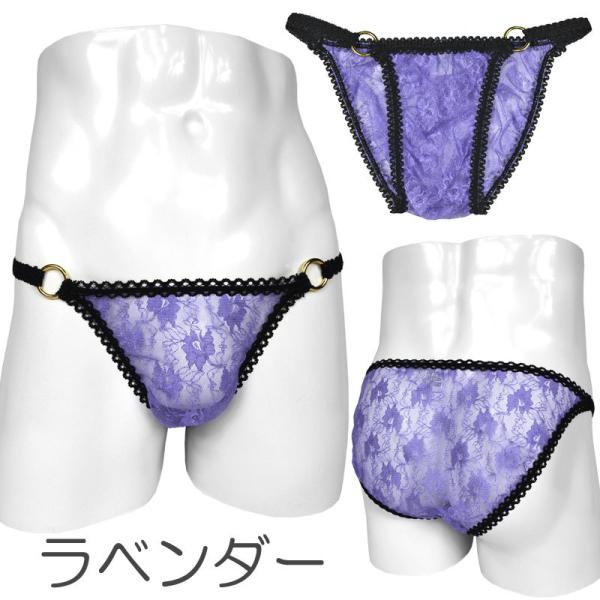 メンズ ビキニ ショーツ シースルーレース 黒ゴム サイドリング 男性下着
