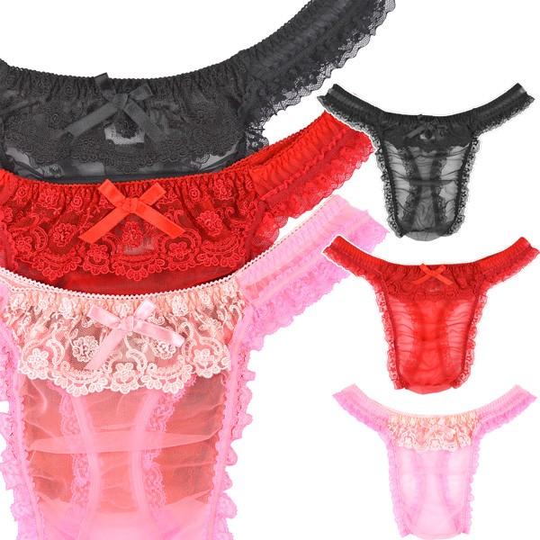 メンズ Tバック シースルー ハーフ フロントレース/男性下着/女装