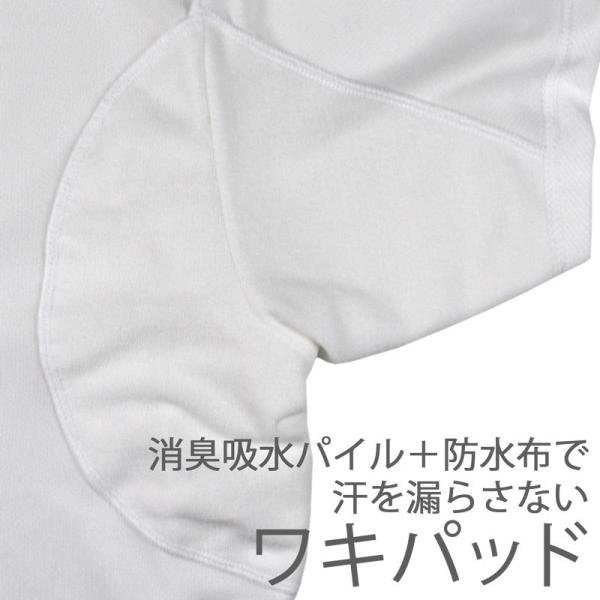 脇汗パッドには吸水パイル(抗菌防臭加工)+防水布を内蔵。