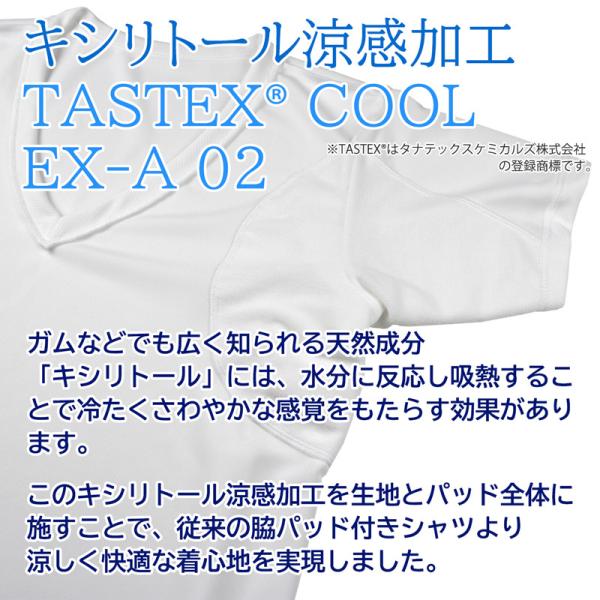 このキシリトール涼感加工を生地とパッド全体に施すことで、従来の脇パッド付きシャツより涼しく快適な着心地を実現しました。