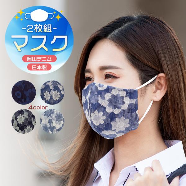 マスク 布マスク 立体フィット 日本製 岡山デニム マーガレット柄 2枚セット おしゃれ 大人 DJ-001m