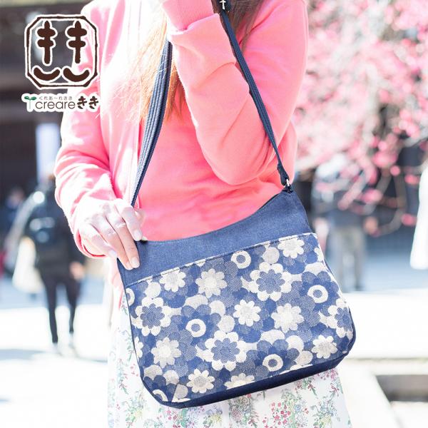 ショルダーバッグ レディース 斜めがけ 大人 軽量 母の日 岡山デニムマーガレット ボディーバッグ 花柄 女性 50代 60代 70代 80代 ギフト [creareきき] DJ-20m