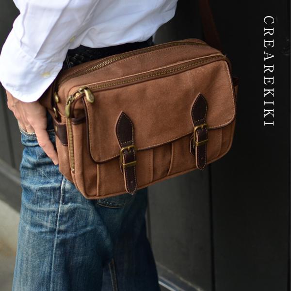 帆布ショルダーバッグ メンズ 斜めがけ 軽量 豊岡鞄 日本製 和装 柿渋染め 帆布 多機能ポケットショルダー 父の日 誕生日 プレゼント [creareきき] KS-315