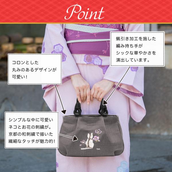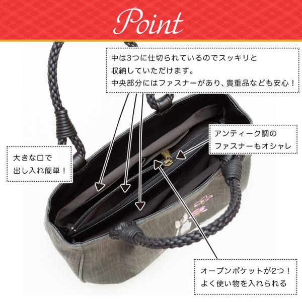 トートバッグレディース 小さめ 軽量 日本製 墨 備長炭染め 猫柄 刺繍 和装 マロン お母さん 誕生日 プレゼント AS-11sn