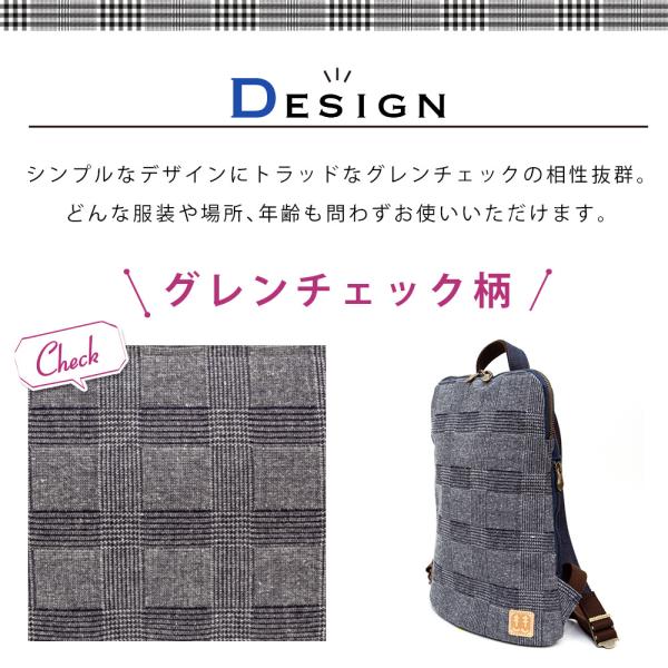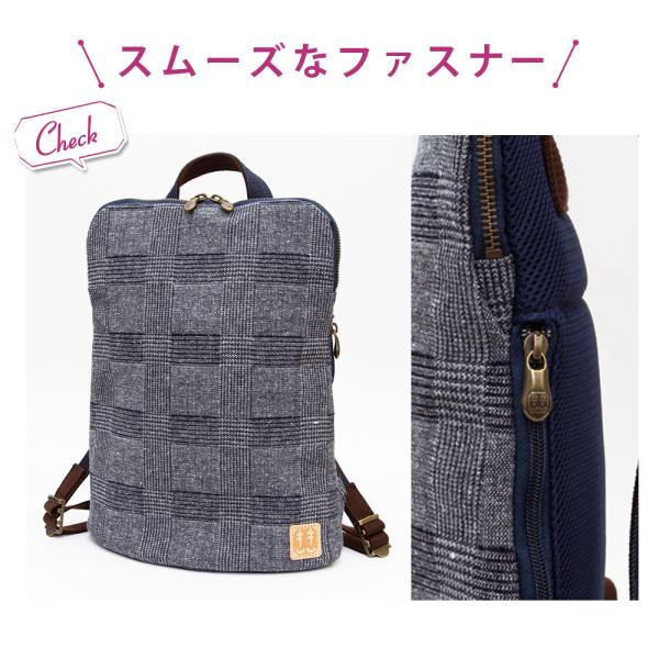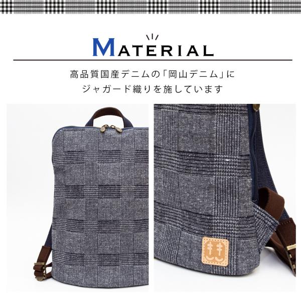リュック メンズ シニア 男女兼用 40代 50代 60代 70代 薄型 日本製 岡山 ジャガード デニム グレンチェック 薄マチリュック [くれあーれきき] Dom-110