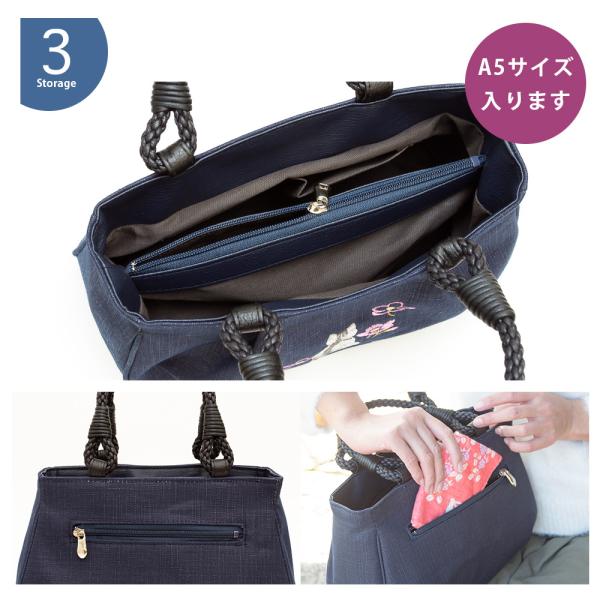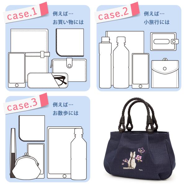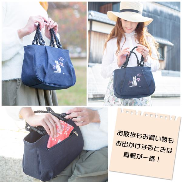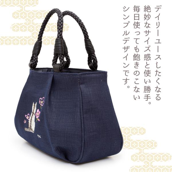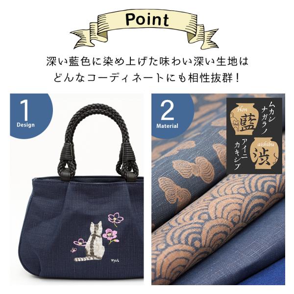 [creareきき] トートバッグレディース 小さめ 軽量 日本製 藍 柿渋染め 猫柄刺〓 和装 アオリ手提げ マロン お母さん 誕生日 プレゼント IZ-18