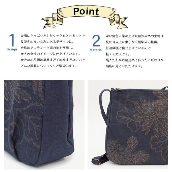 ショルダーバッグ レディース 斜めがけ 軽量 日本製 和装 藍 柿渋染め 京帆布 華更紗 ク レープ お母さん 誕生日 プレゼント IZ-20[creareきき]